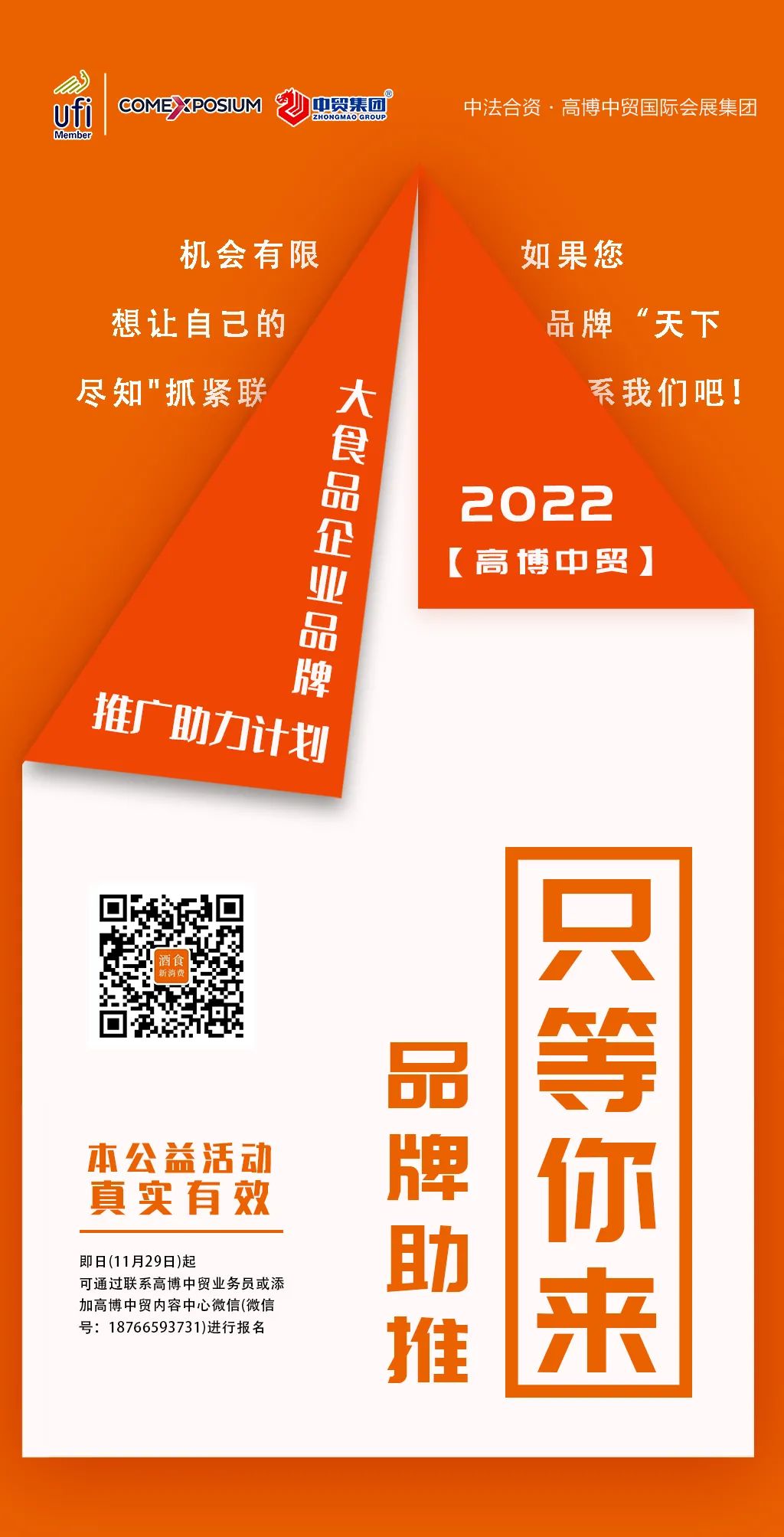 本公益活動真實(shí)有效,即日(11月29日)起,可通過聯(lián)系高博中貿(mào)業(yè)務(wù)員或添加高博中貿(mào)內(nèi)容中心微信(微信號:18766593731)進(jìn)行報名,我們將根據(jù)報名順序逐一與企業(yè)進(jìn)行聯(lián)系,著手排期進(jìn)行助力計劃。